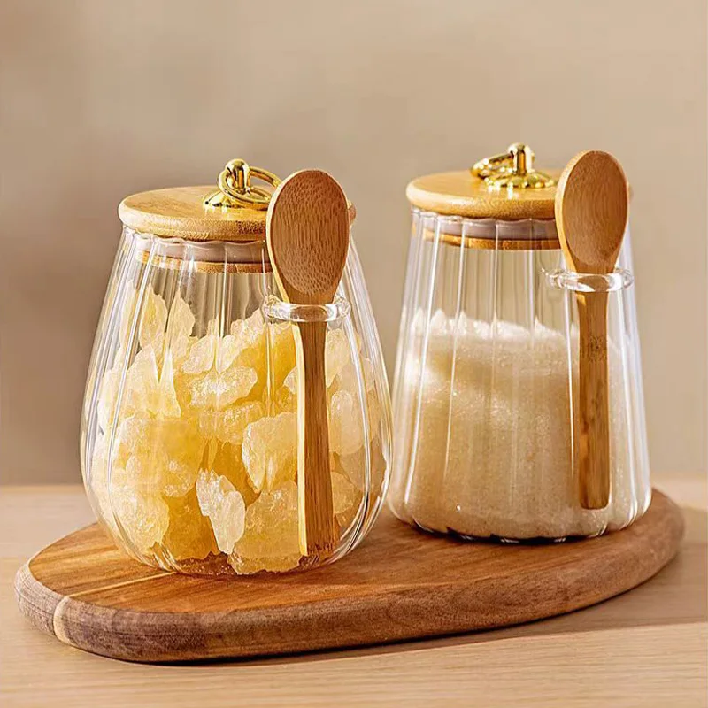 1pc Food Containers Kitchen Storage Pots Glass Jar with Lid Spoon Sealed Canister Sugar Tea Cans Hermetic Coffee Beans Bottles