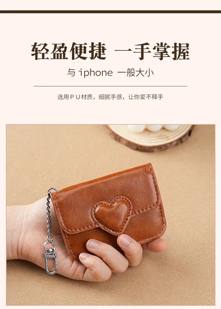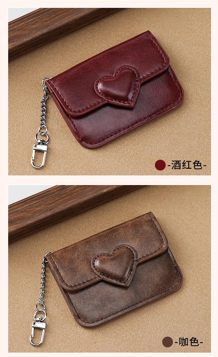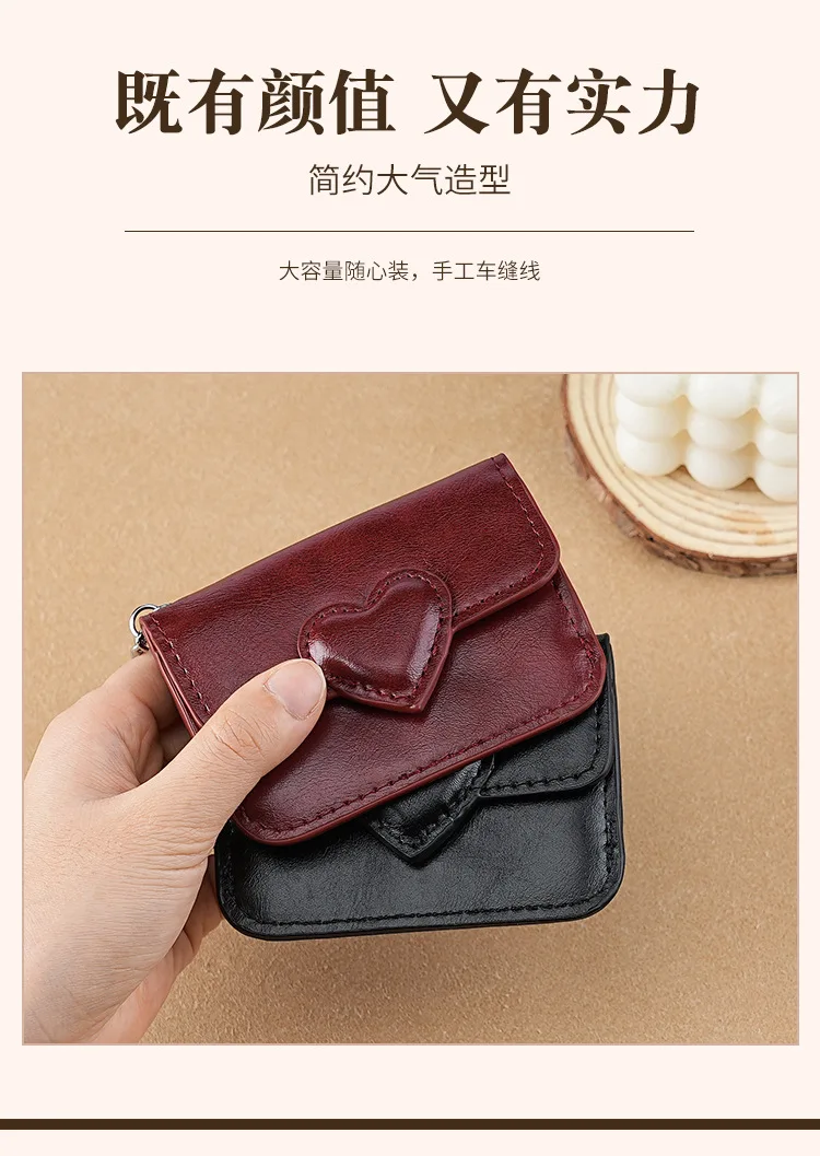 PULeather Card Holder Purse Women Cute Heart Shaped Small Wallet Multi-card Anti-magnetic Card Holder Travel Cash Coin Bag